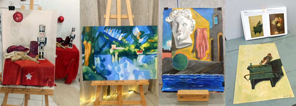Το μάθημα της ζωγραφικής διδάσκεται με δύο τρόπους: α) με συνθέσεις στο χώρο, για όσα άτομα έχουν κατακτήσει τις βασικές αρχές του σχεδίου και β) από εικόνες έργων γνωστών καλλιτεχνών, που δεν έχει ως προαπαιτούμενο την εκμάθηση σχεδίου. Δοκιμάζουμε διάφορα μέσα (παστέλ, ακρυλικά, μελάνια, κλπ) ώστε να βρούμε ποιο είναι αυτό που μας ταιριάζει. Μαθαίνουμε να κάνουμε μίξεις χρωμάτων για να μπορούμε να φτιάχνουμε όποιο χρώμα επιθυμούμε, εκπαιδευόμαστε έτσι και στη θεωρία χρώματος. Μελετάμε το έργο γνωστών καλλιτεχνών παρατηρώντας τα χαρακτηριστικά της δουλείας τους και προσπαθώντας να ανακαλύψουμε τι είναι αυτό που προσδιορίζει το προσωπικό τους στυλ. Με αυτό τον τρόπο ερχόμαστε σε επαφή με την ιστορία της τέχνης και καλλιεργούμε την αισθητική μας αντίληψη ενώ ταυτόχρονα γνωρίζουμε ποικίλες τεχνικές σε πρακτικό επίπεδο. Πλέον το όριο είναι μόνο η φαντασία μας.