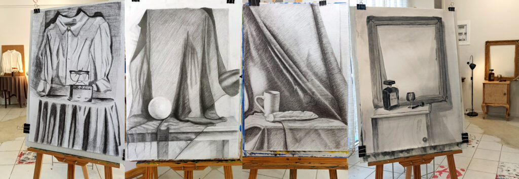 Το σχέδιο είναι η αλφαβήτα των εικαστικών τεχνών. Μέσω αυτού εκπαιδεύουμε το μάτι μας να αντιλαμβάνεται τόνους, χρώματα, σχήματα, αναλογίες. Το σχέδιο είναι μία γλώσσα έκφρασης. Μαθαίνουμε τους κανόνες για να μπορούμε να τους σπάμε. Το μάθημα διδάσκεται μέσω της παρατήρησης συνθέσεων που στήνονται στο χώρο. Οι συνθέσεις αυτές φτιάχνονται λαμβάνοντας υπόψη την ανθρώπινη οπτική αντίληψη και την καλλιέργεια του αισθητικού μας κριτηρίου. Δουλεύουμε ακολουθώντας το ταξίδι της σκιάς προς το φως μαθαίνοντας έτσι να ξεχωρίζουμε χρωματικούς μικροτόνους.